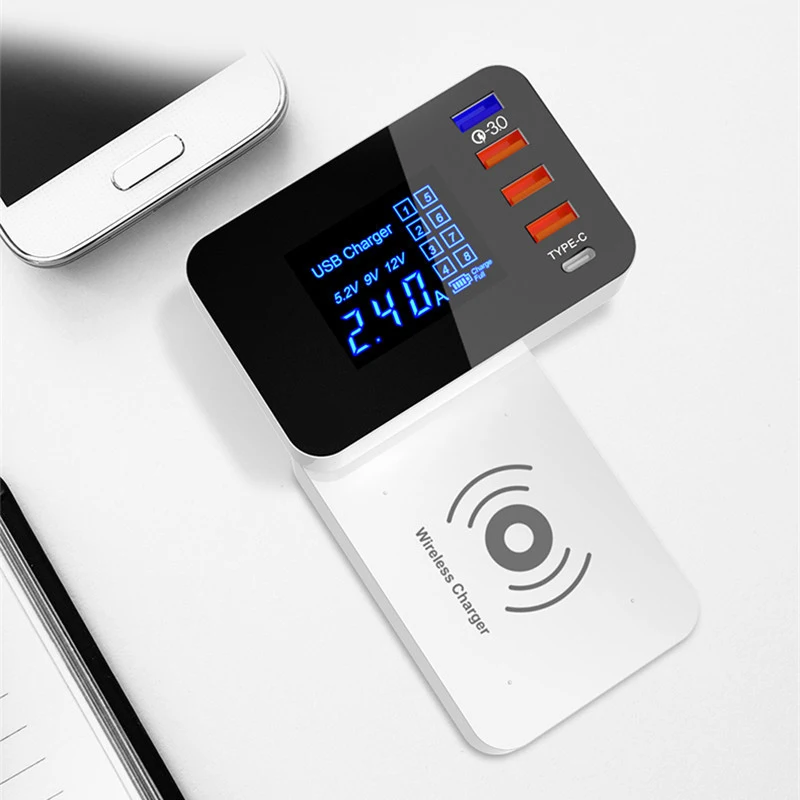 Good Offer for QI Wireless Charger Quick Charge 3.0 Smart USB Type C Charger Station Led Display Fast Charging Pow